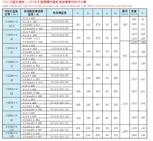 YZW II型外裝式 YZWB II型隔爆式外裝式電動(dòng)滾筒 |