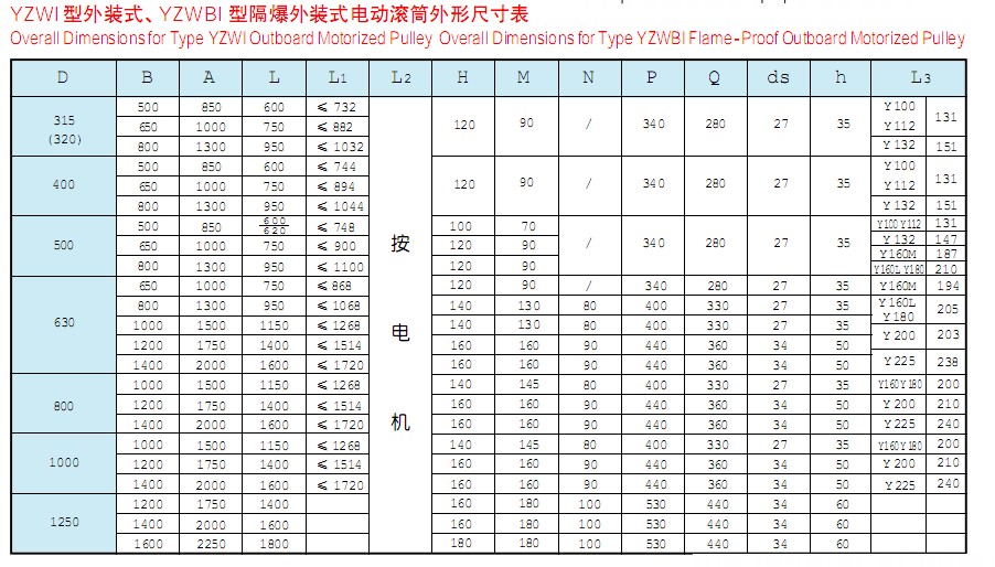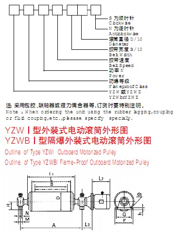 該產品是供各種固定式帶式輸送機、斗式提升機、卷揚機等配套的新型驅動裝置。其內部采用行星擺線減速機構,使電機外露與滾筒直聯(lián),具有承載能力大、過載能力強、傳動平穩(wěn)、噪音低、壽命長,使用維修方便,操作安全可靠等優(yōu)點??蓾M足各種逆止、包膠等要求。隔爆外裝式電動滾筒其隔爆標志位dl、dllAT4。dl適合于有甲烷或煤塵礦井中,dllAT4適合于有I、IIA級T2~T4組爆炸危險性混合物存在的場所,dllBT4適用于有I、IIA、IIB級T2~T4組爆炸危險性混合物存在的場所。