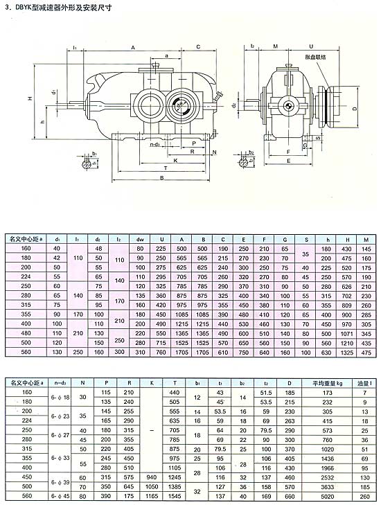 D一帶式輸送機(jī)類組代號,B一二級傳動,c一三級傳動,Y一硬齒面齒輪,z一中硬齒面齒輪,K一輸出軸為空心軸形式。